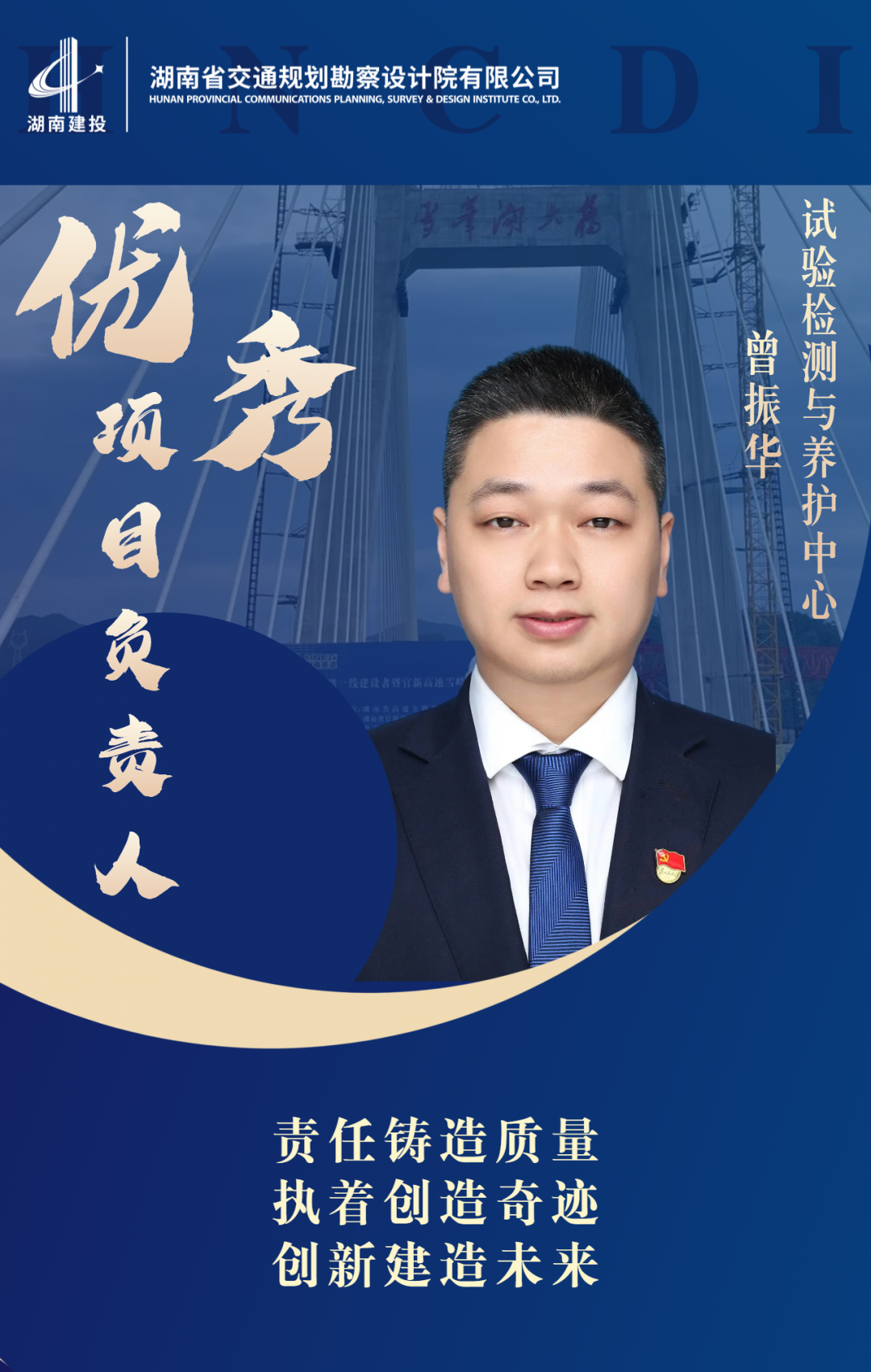 傳播榜樣風采,汲取奮進力量。2023年,湖南省交通規劃勘察設計院有限公司涌現出一批愛崗敬業、開拓創新的項目負責人及設計代表,他們以實干實績詮釋了公司企業文化“以誠信立市場、以技術拓市場、以品質贏市場、以服務固市場”的市場理念和“加強溝通、高質高效、顧客滿意”的服...